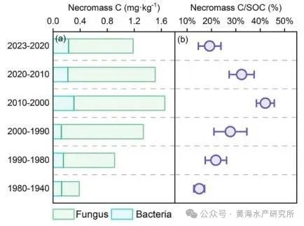 进一步研究发现,虽然养殖区碳埋藏通量更高,但平均仅42.9%的沉积碳被稳定埋藏,其余被矿化释放。微生物在碳汇过程中扮演“双面角色”,一方面微生物能够分解生物沉积物中的有机碳,另一方面其残体在沉积碳稳定方面发挥了重要作用,促进了沉积碳的长期储存。因此,控制养殖密度,将微生物作用的平衡点推向残体的积累,是贝类养殖生态系统发挥碳汇效应的关键。