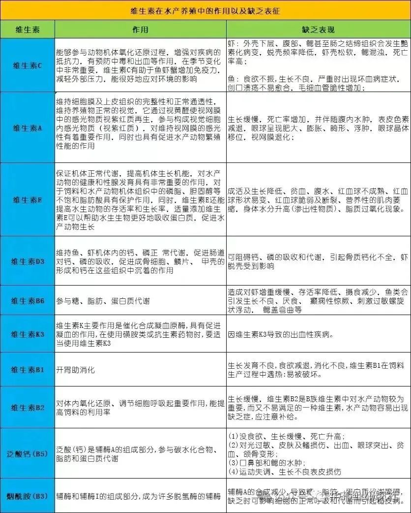 动物营养学上将营养素主要分为六大类,包括蛋白质、脂类、碳水化合物、维生素、无机盐和水,其中,由于维生素需求量很小,往往在实际生产中容易被忽视。但维生素对水产养殖动物的正常生理功能和生长发育具有无法替代的作用,且维生素在水产动物体内一般无法自身合成,必须从饵料中获得。