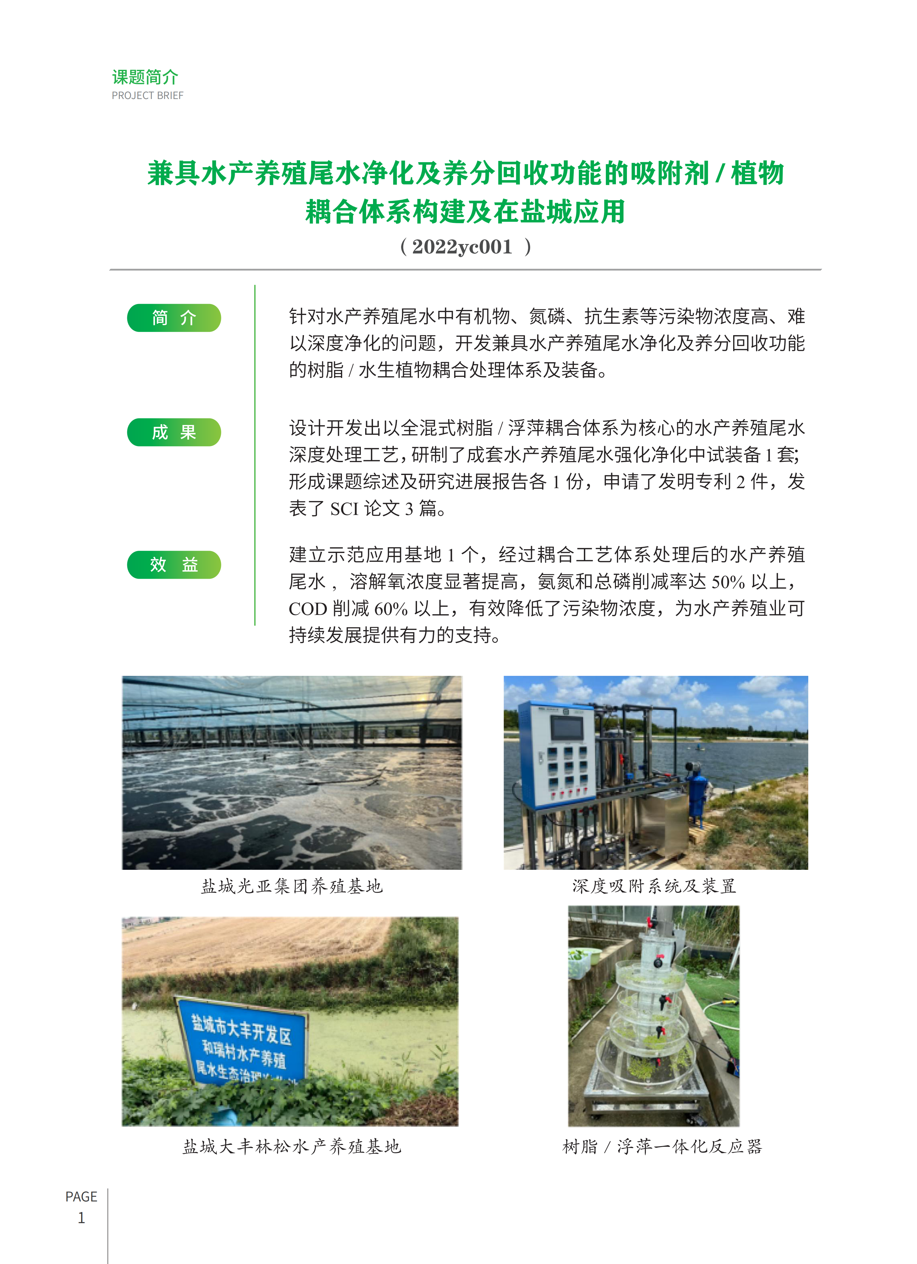 兼具水产养殖尾水净化及养分回收功能的吸附剂/植物耦合体系构建及在盐城应用