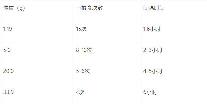 若体重为20g,单次胃容量=20g×2.1%=0.42g饲料。