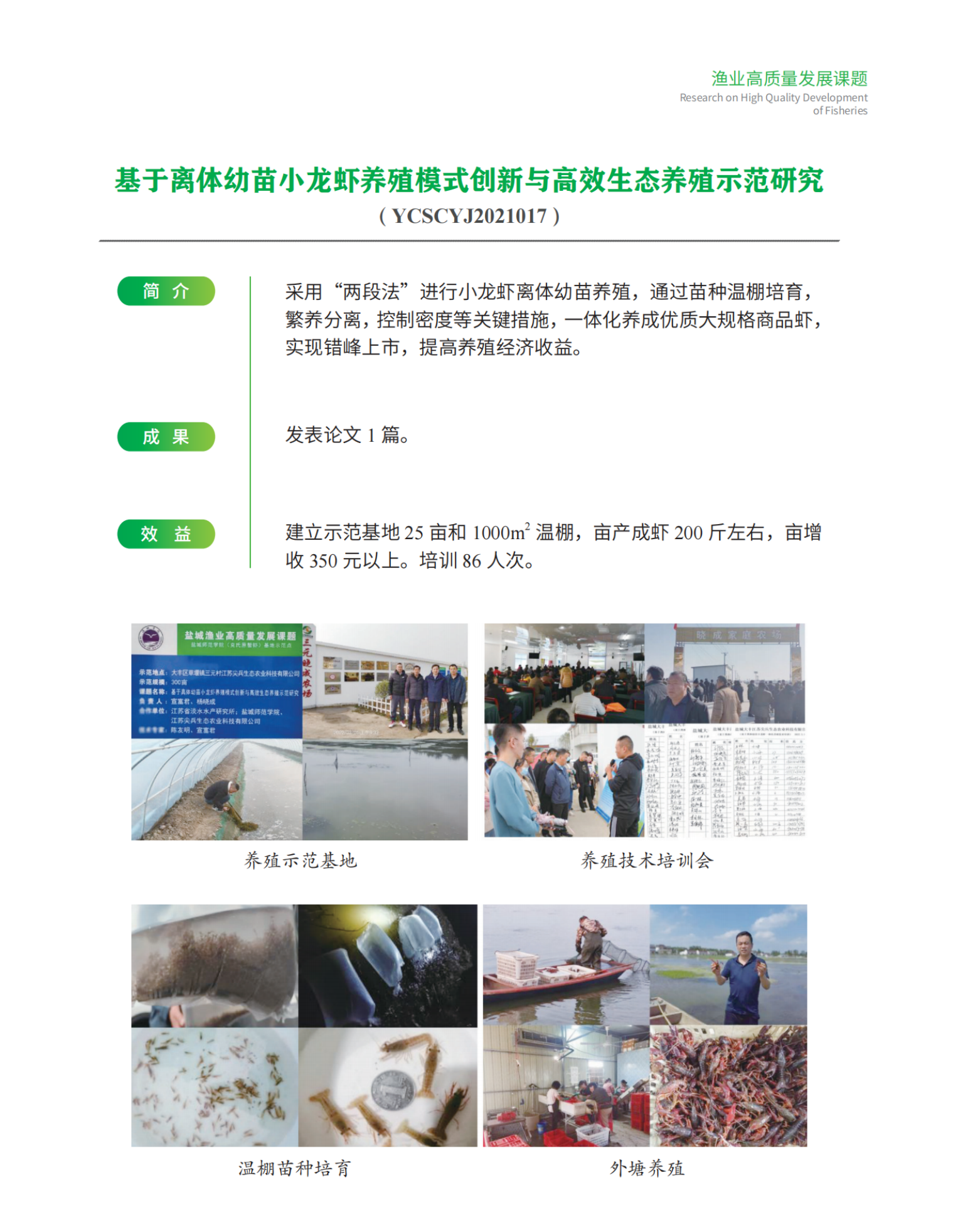基于离体幼苗小龙虾养殖模式创新与高效生态养殖示范研究