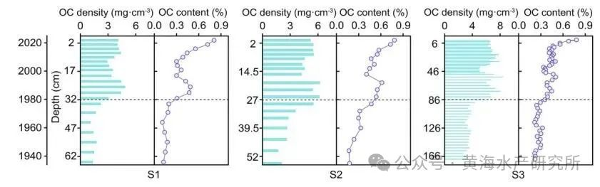 基于210Pb定年的沉积物有机碳垂向变化